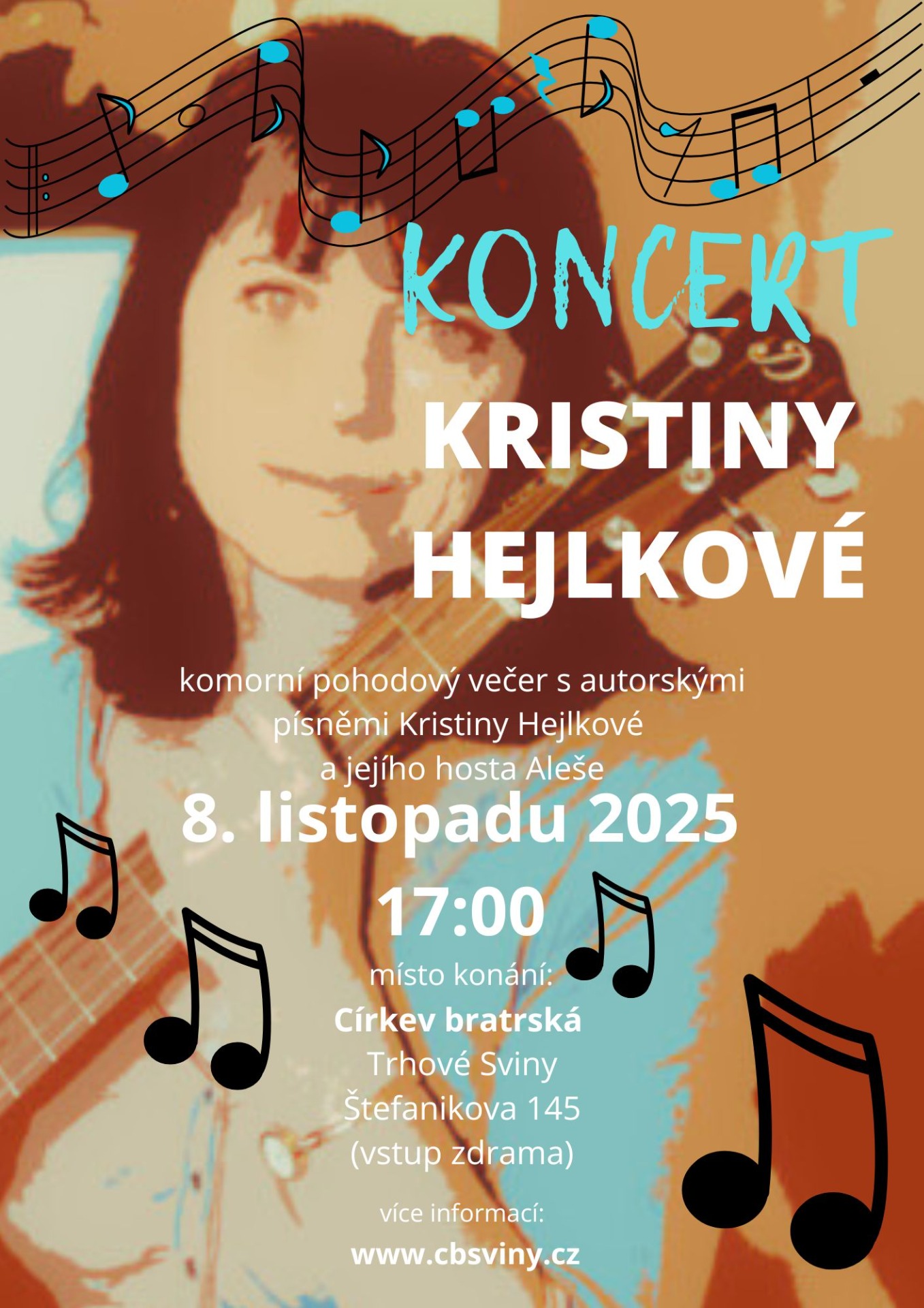 Přijměte pozvání na koncert Kristiny Hejlkové, která dokáže svým zvonivým hlasem a neotřelým zpracováním biblických příběhů vykouzlit nejeden úsměv a potěšení na duši.